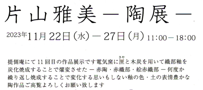 HOME > Feature77 片山雅美–陶展–[2023.11.22-11.27] Feature76 123456789101112131415161718192021222324252627282930313233343536373839404142434445464748495051525354555657585960616263646566676869707172737475767778798081828384858687888990 Feature78 Event 蓮加都子 陶展 羅介の福童子染付器展 小島憲二陶展 リングワンダリング Taguiな日常 長岡國人展 元永紅子 田中小枝 陶展 川嶋守彦 個展 片山雅美–陶展– 蓮 善隆 作陶展 中野英一遺作展 彫刻 三人展 中村ミナトのジュエリー 光島和子ガラス展 沓沢佐知子作品展 小島憲二陶展 陶彫 高山光 元永定正100点展 杉井観峯展 川嶋守彦・元永紅子展 関根正文 金工展 山本莞二・鈴木律子 彫刻展 光島和子 ガラス展 蓮善隆作陶展 片山雅美陶展 小島憲二 熊谷 誠 田中小枝展 高北幸矢展 長谷川浩子展 片山雅美陶展 竹田安嵯代展 寄神千恵子陶展 光島和子ガラス展 山本莞二・鈴木律子 彫刻展 小島憲二陶展 羅介・辻恵子の二人展 杉井観峯展 元永定正とその家族展 長岡國人展 中村ミナト展 蓮善隆作陶展 太平和正展 羅介の福童子染付器てん NH展 村山幸子 植松永次 WERK-STATT N組 片山雅美 光島和子 夢ノ随二+三角帽子の世界 鷲津民子 山田喜代春 小島憲二 志村高弘 熊谷 誠 安藤栄作 竹田安嵯代 羅介の福童子染付器てん 小牧鉄平 陶展–情景– NH6展 寄神宗美 岡崎ゆみこ 伊藤宏美・ヒーロー伊藤 片山 雅美 川嶋守彦・元永紅子 内藤絹子 群 和子 猪熊克芳 新 佳三 谷本 貴 蓮 善隆 光島和子 竹田安嵯代 小島憲二 杉井観峯 川崎ヒロ子 高山 大 長岡國人 片山雅美 笹山忠保 宮本 治・宮本京子 谷本 景 太平和正 Schedule