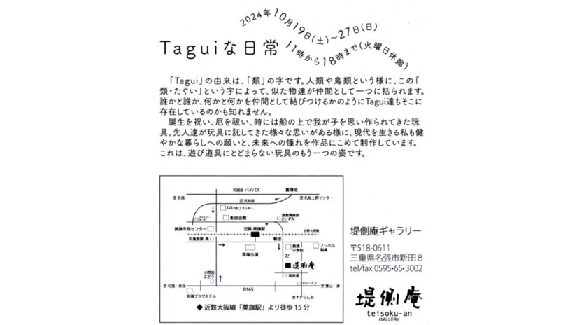 HOME > Feature82 Taguiな日常[2024.10.19-10.27] Feature81 123456789101112131415161718192021222324252627282930313233343536373839404142434445464748495051525354555657585960616263646566676869707172737475767778798081828384858687888990 Feature83 Event 蓮加都子 陶展 羅介の福童子染付器展 小島憲二陶展 リングワンダリング Taguiな日常 長岡國人展 元永紅子 田中小枝 陶展 川嶋守彦 個展 片山雅美–陶展– 蓮 善隆 作陶展 中野英一遺作展 彫刻 三人展 中村ミナトのジュエリー 光島和子ガラス展 沓沢佐知子作品展 小島憲二陶展 陶彫 高山光 元永定正100点展 杉井観峯展 川嶋守彦・元永紅子展 関根正文 金工展 山本莞二・鈴木律子 彫刻展 光島和子 ガラス展 蓮善隆作陶展 片山雅美陶展 小島憲二 熊谷 誠 田中小枝展 高北幸矢展 長谷川浩子展 片山雅美陶展 竹田安嵯代展 寄神千恵子陶展 光島和子ガラス展 山本莞二・鈴木律子 彫刻展 小島憲二陶展 羅介・辻恵子の二人展 杉井観峯展 元永定正とその家族展 長岡國人展 中村ミナト展 蓮善隆作陶展 太平和正展 羅介の福童子染付器てん NH展 村山幸子 植松永次 WERK-STATT N組 片山雅美 光島和子 夢ノ随二+三角帽子の世界 鷲津民子 山田喜代春 小島憲二 志村高弘 熊谷 誠 安藤栄作 竹田安嵯代 羅介の福童子染付器てん 小牧鉄平 陶展–情景– NH6展 寄神宗美 岡崎ゆみこ 伊藤宏美・ヒーロー伊藤 片山 雅美 川嶋守彦・元永紅子 内藤絹子 群 和子 猪熊克芳 新 佳三 谷本 貴 蓮 善隆 光島和子 竹田安嵯代 小島憲二 杉井観峯 川崎ヒロ子 高山 大 長岡國人 片山雅美 笹山忠保 宮本 治・宮本京子 谷本 景 太平和正 Schedule